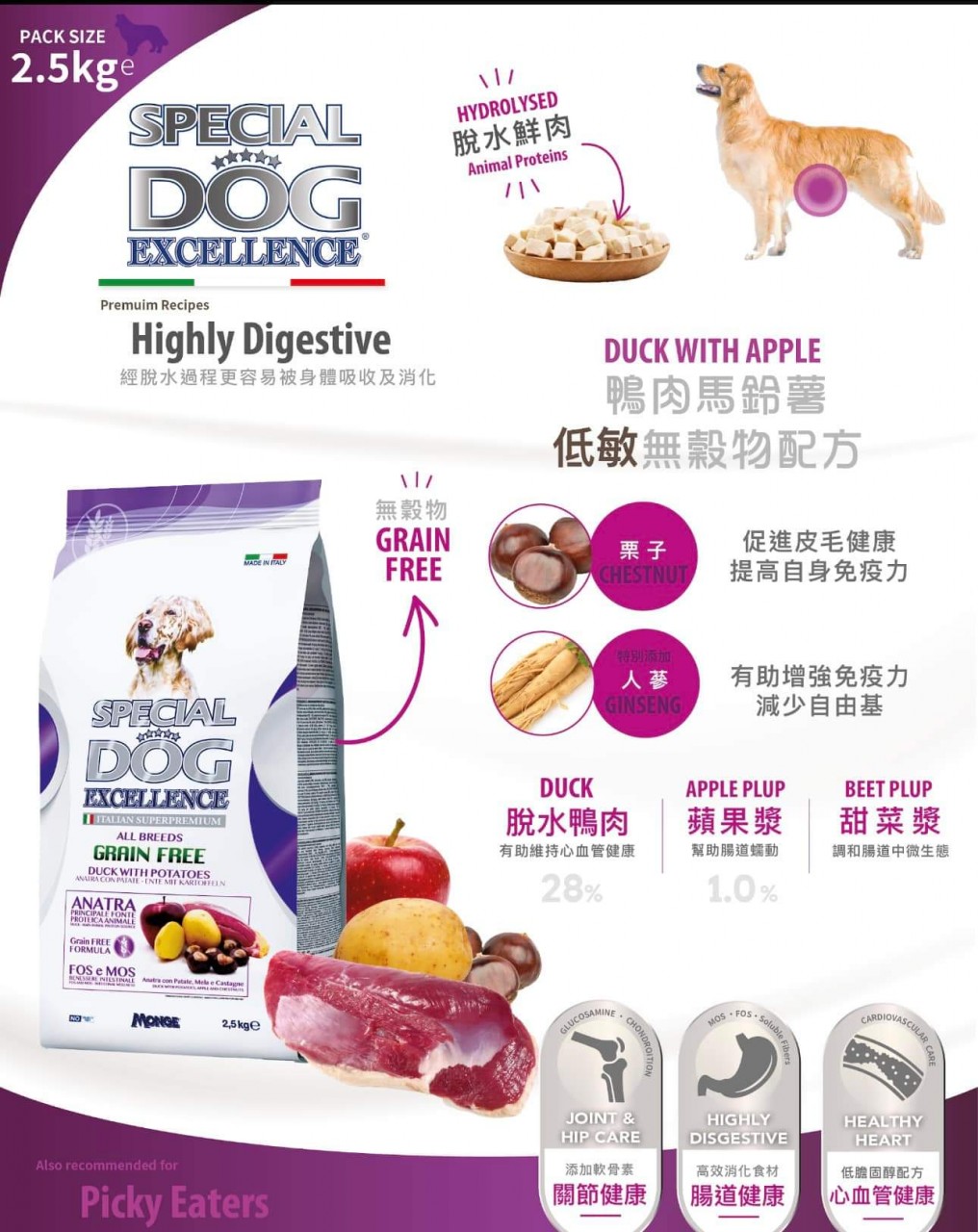 NO:SD-9961 鴨肉馬鈴薯無穀物低敏腸道護理配方 2.5kg